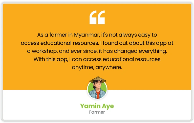 Farmers in many developing countries lack adequate resources and access to information on sustainable agriculture development. In Myanmar, approximately 70% of the population depends on agriculture for their livelihoods, yet a large proportion of them still do not have access to reliable, up-to-date knowledge on sustainable farming practices. Most rural farmers in the country often find themselves in this line of work not by choice, but as a consequence of circumstance.